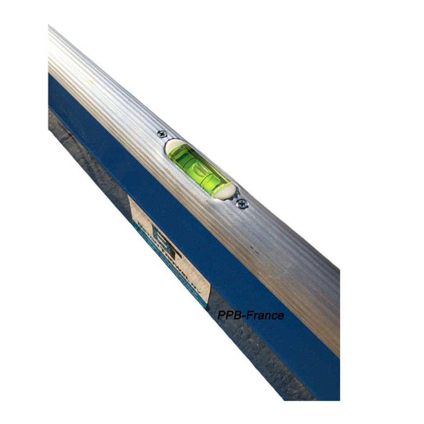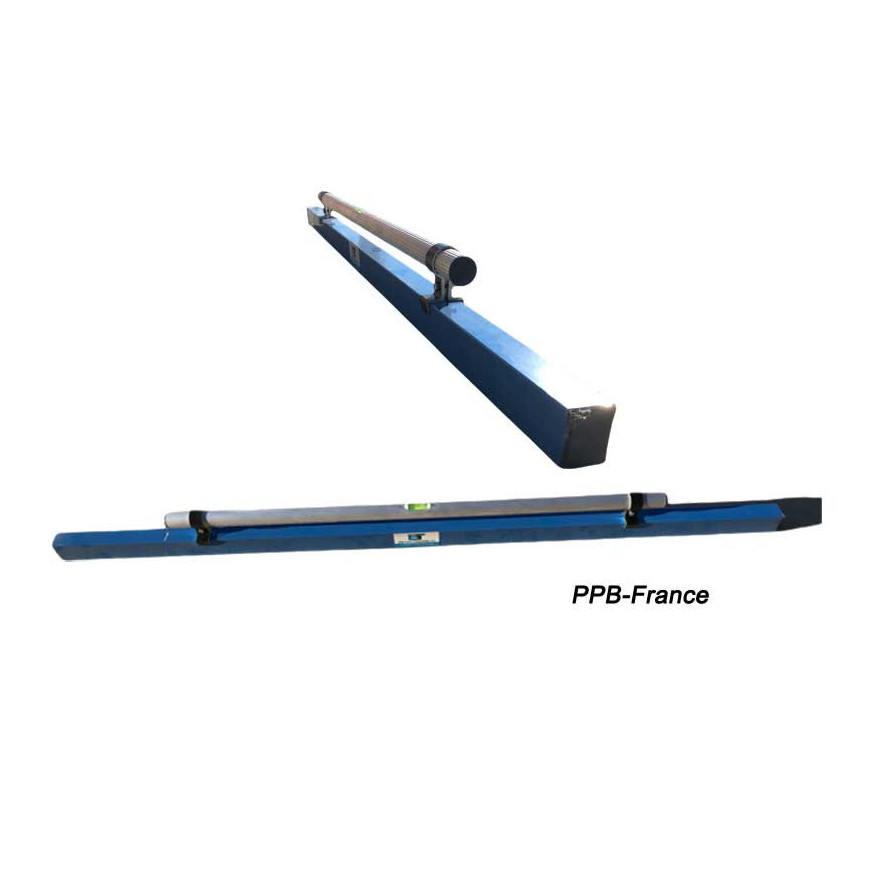Règle à béton double angles avec barre de maintien et niveau à bulle.
